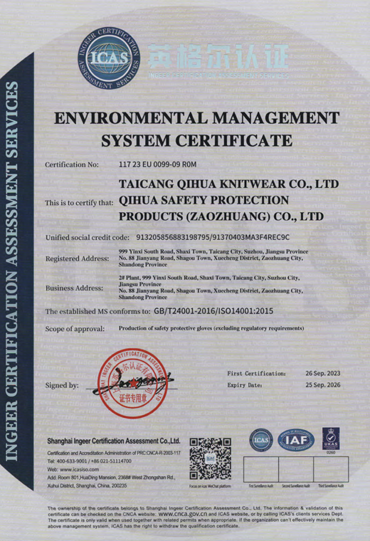 環境管理體系認證證書